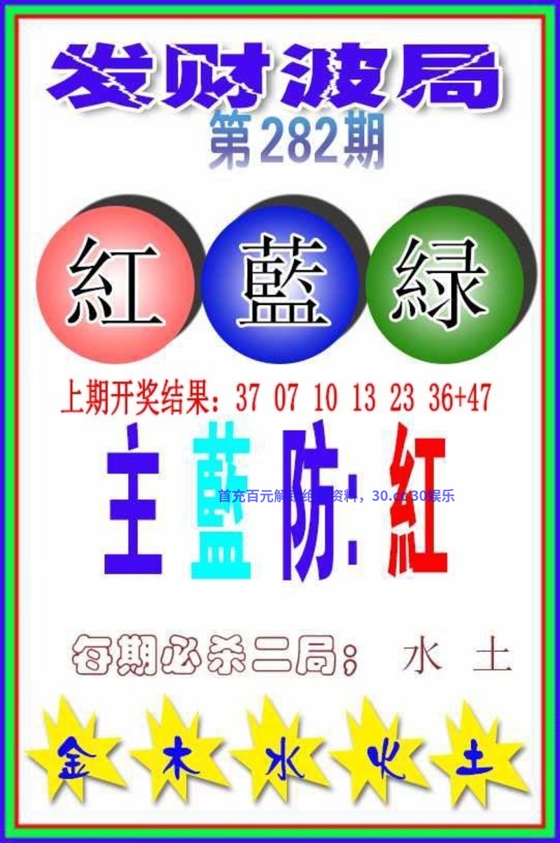 282期『发财波局』开發00 精解特肖:狗猪牛虎羊蛇 必中二波:主蓝防红 绝杀二局:水土 |